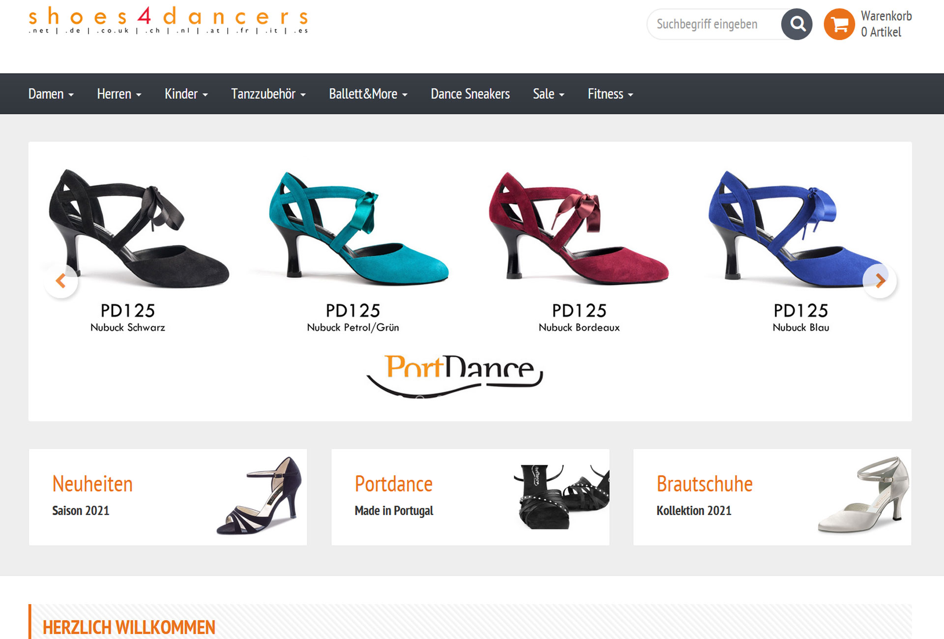 Wir führen zusätzlich zur Tanzschule ein internationales Fachgeschäft mit einem großen Sortiment an Tanzschuhen, Tanzbekleidung und Tanzzubehör aller Art. Wir freuen uns auf Ihren Einkauf in unserem shoes4dancers Online-Shop.